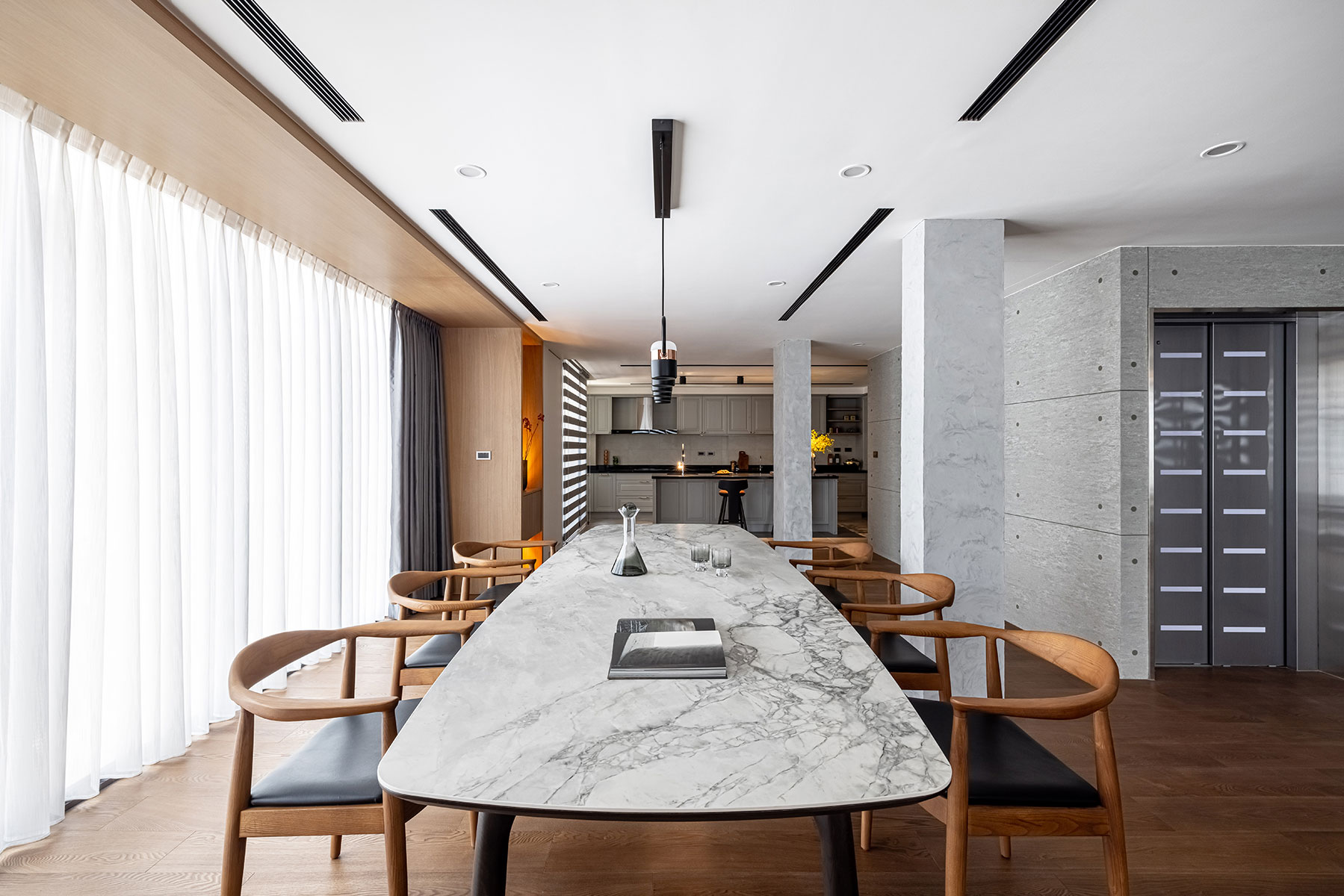 踏入雪白建築,層層向上,煥發光潔澄澈的爽朗白淨,深沉穩重的黑,與溫潤質樸的木質共築一室,爬梳男主人對質感的需求,回應女主人向美感的憧憬,形成家人齊聚同樂之處,成就串連情感的樂園。